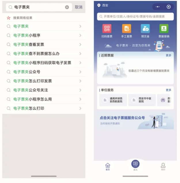 1.通过“电子票夹”小程序获取电子发票