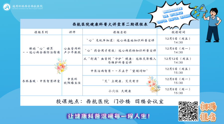 您是否以为冠心病只是老年人才需要担心的问题? 您是否觉得中医养生就是喝苦药、做艾灸? 您是否想知道如何从日常生活中预防心血管疾病? 健康守护需要科学知识,面对生活中众多的健康信息,您...
